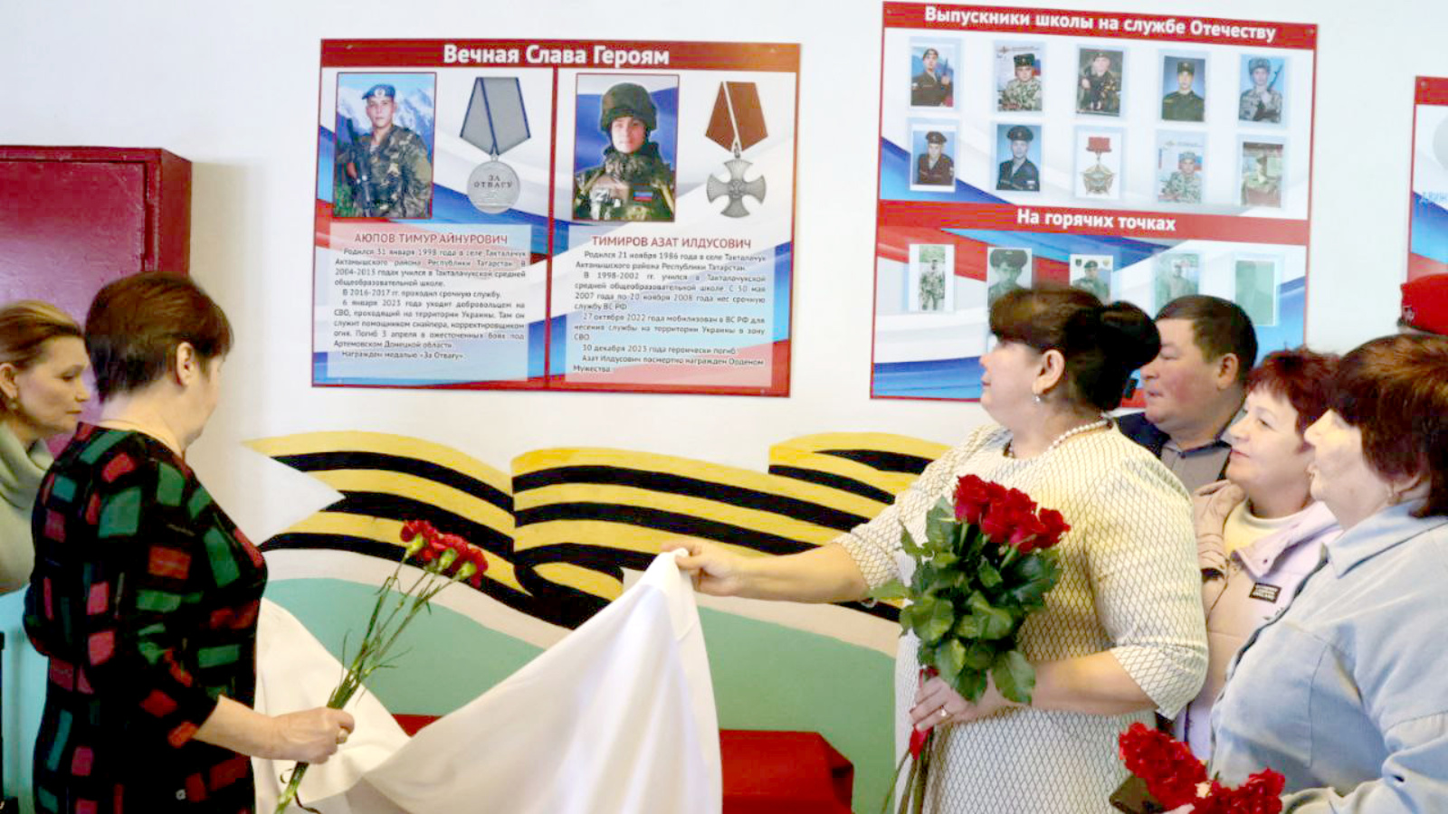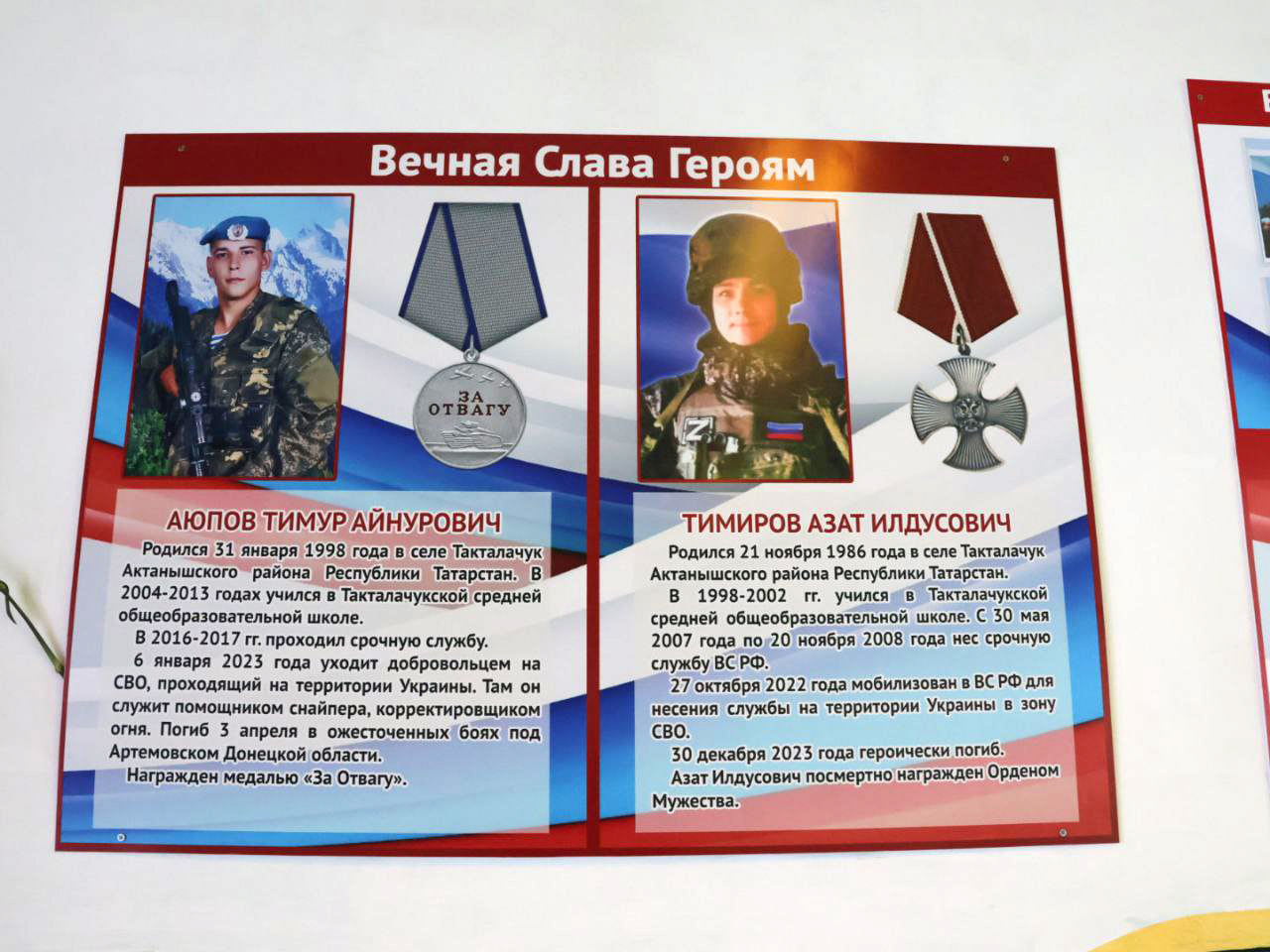 Бүген Такталачык төп гомуми белем бирү мәктәбендә махсус хәрби операциядә һаләк булган авылдашлары Тимиров Азат Илдус улы һәм Аюпов Тимур Айнур улы истәлегенә мемориаль такта ачу тантанасы узды.