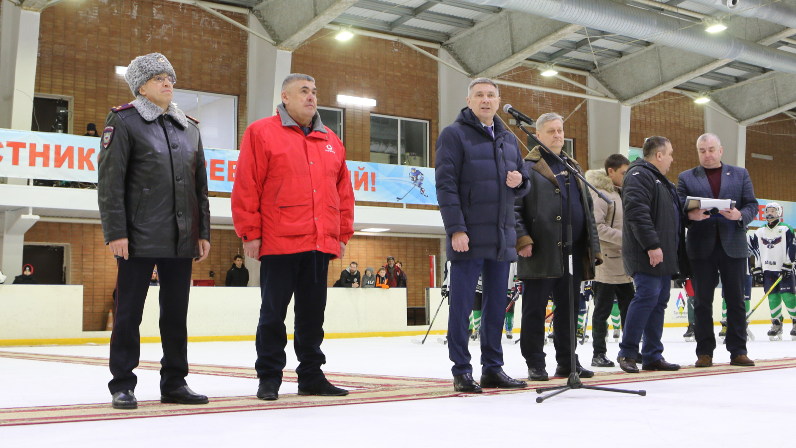 Турнирның ачу тантанасында район башлыгы Ленар Зарипов та катнашты. Командаларны сәламләп, ихластан уңышлар теләде ул һәм хоккейчылар алдына тәүге шайбаны салды. Шулай ук, "Лачын" спорт мәктәбе директоры, ТРның атказанган мөгаллиме, спорт һәм физик культура отличнигы Рамил Галиевка профсоюз эшендә актив катнашканы өчен ТР Спорт министры һәм Татарстан Республикасы буенча РФ дәүләт учрежденияләре һәм җәмәгать хезмәте эшчеләренең Профсоюз оешмалары җитәкчесе тарафыннан имзаланган Диплом һәм Мактау грамотасын тапшырды.