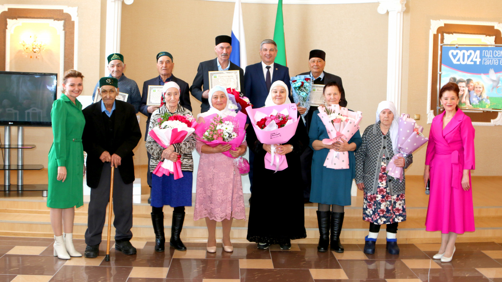 Тантаналы чарада район башлыгы Ленар Зарипов та катнашты. Яшьләребезгә үрнәк булган, гаилә кыйммәтләрен саклап, еллар дәвамында саклап килгән өлкән яшьтәге абый-апаларыбызны бәйрәмнәре белән тәбрикләп, сәламәтлек, бәхет-шатлыклар теләде ул.