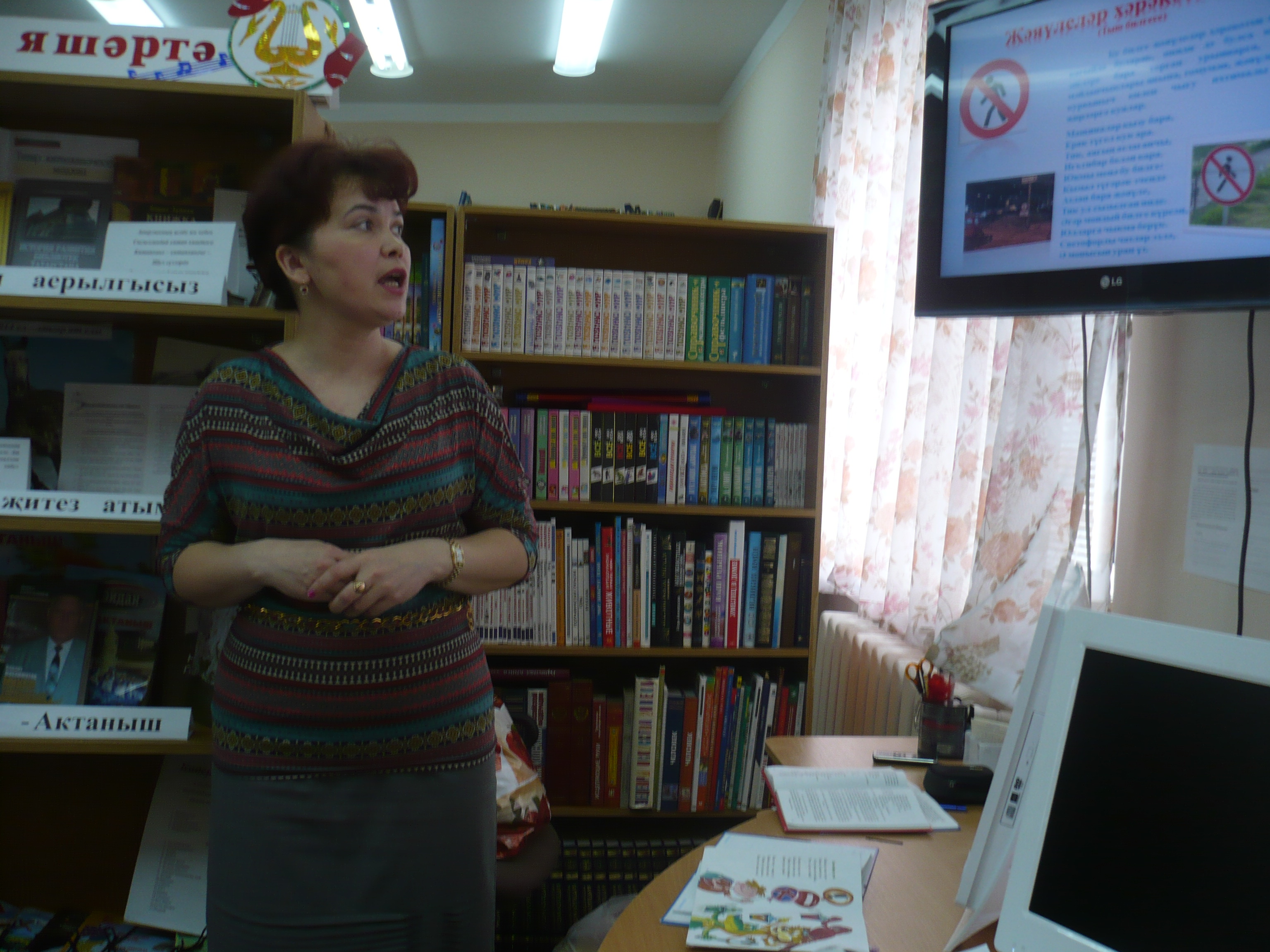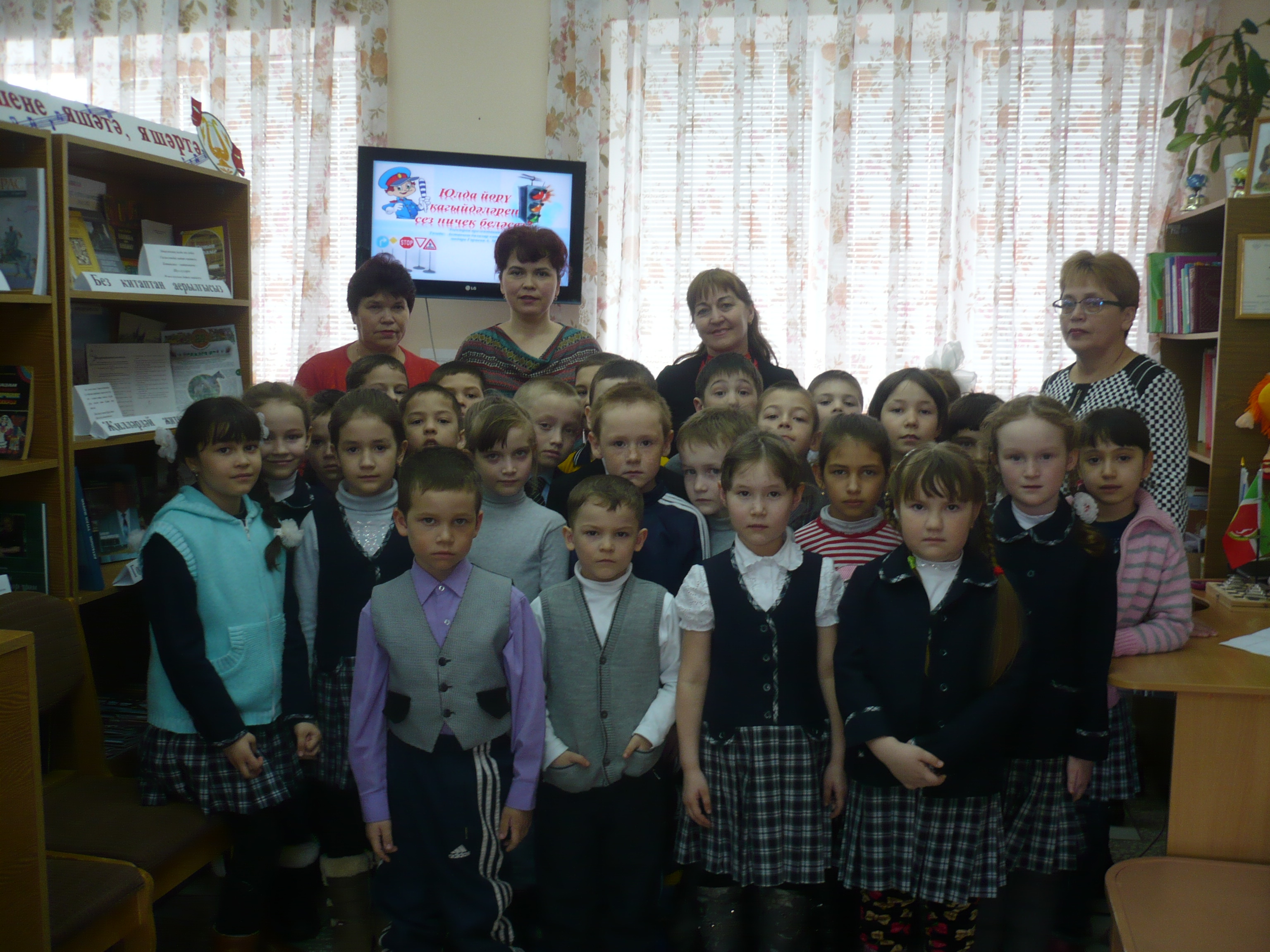 4 апрель көнне Актаныш үзәк балалар китапханәсендә 1 санлы Актаныш урта мәктәбенең 1”В” һәм 1 “Г” сыйныфы укучылары һәм озайтылган көн төркеме тәрбиячеләре : Гөлнара Әкбәрова, Зәһинә Долгова белән берлектә “Юл йөрү кагыйдәләрен сез ничек беләсез” дигән электрон презентация уздырылды.