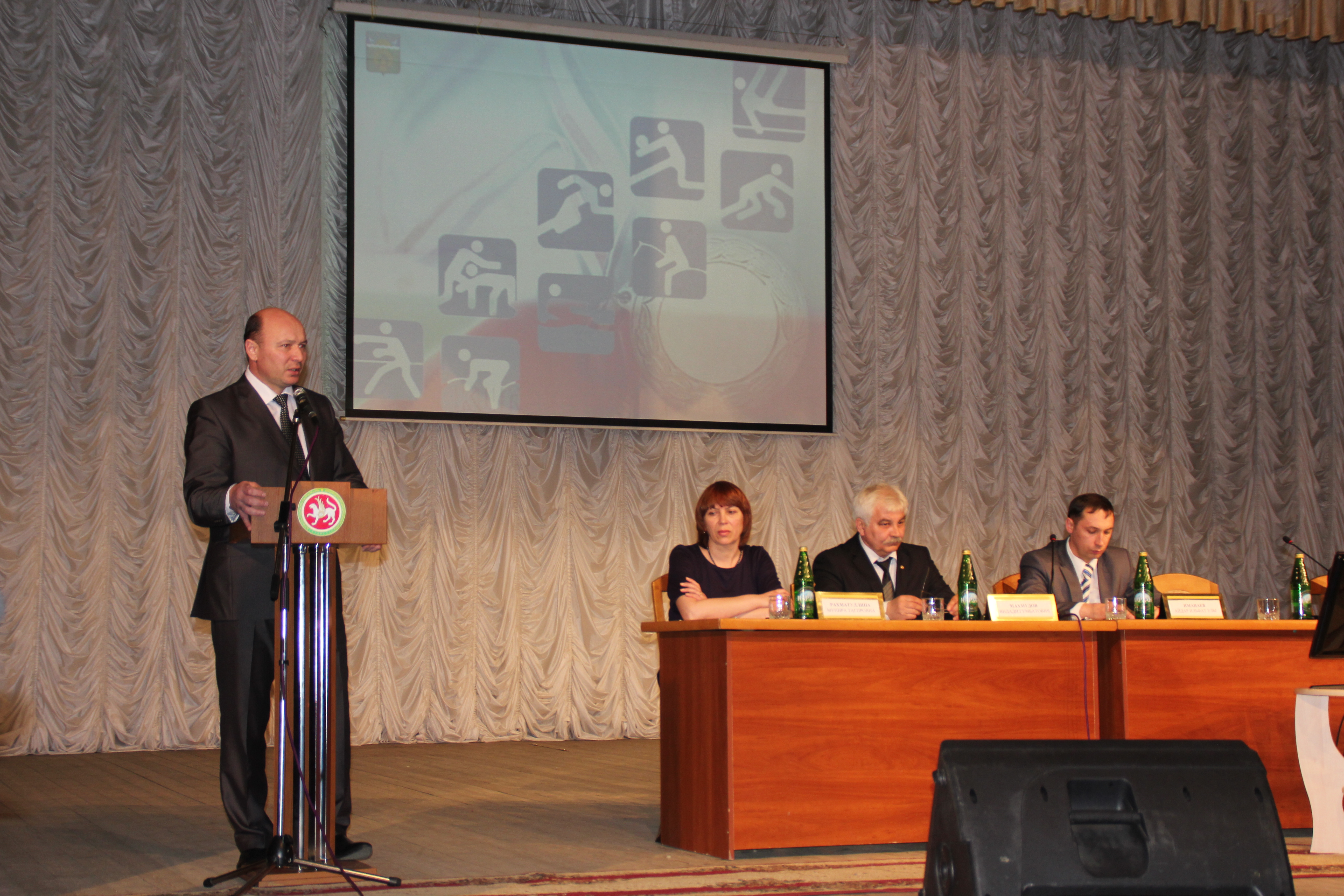 Конференция район Мәдәният сараенда үтте, анда авыл җирлеге башлыклары, мәктәп директорлары, районның барлык физкультура хезмәткәрләре, республика , бөтенроссия ярышларында җиңүчеләр, спорт ветераннары чакырылган иде.
