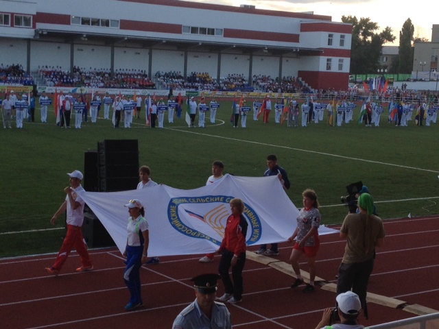 Билгеле булганча, Актаныштан Татарстан өчен 10 кешелек команда чыгыш ясый. Бу фотода Сез Актаныштан Россия авыл уеннары призеры, РФ физик культура отличнигы Ирек Мөхәмәтовның Уеннарны ачканда X Бөтенроссия җәйге авыл спорт уеннарының флагын алып кергәнен күрәсез.