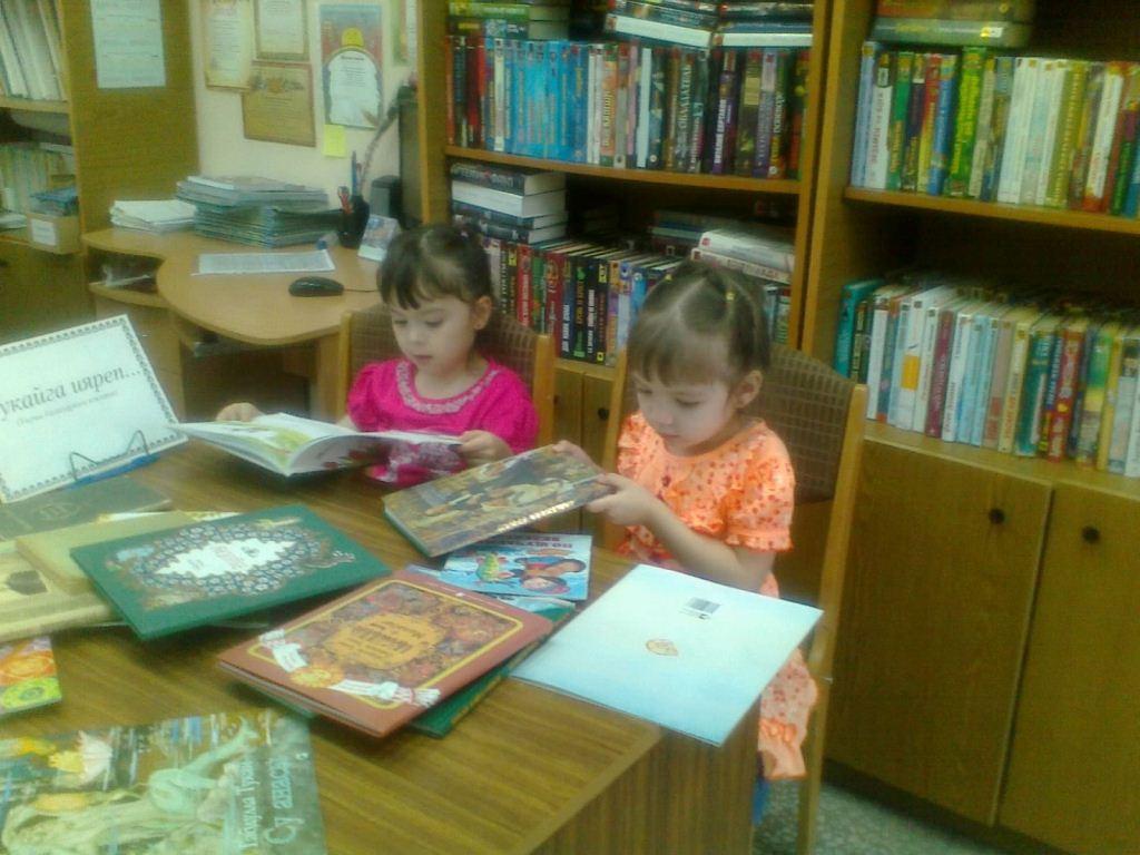 Китапханәнең иң беренче кунаклары мәктәпкәчә яшьтәге балалар булды. Кечкенә дусларыбызга Г.Тукайның балачагы турында сөйләдек. Шагыйрьнең әкиятләре буенча төзелгән мультфильмнар күрсәттек. Оештырылгын чараларда балалар белән берлектә әти-әниләр дә катнашты.