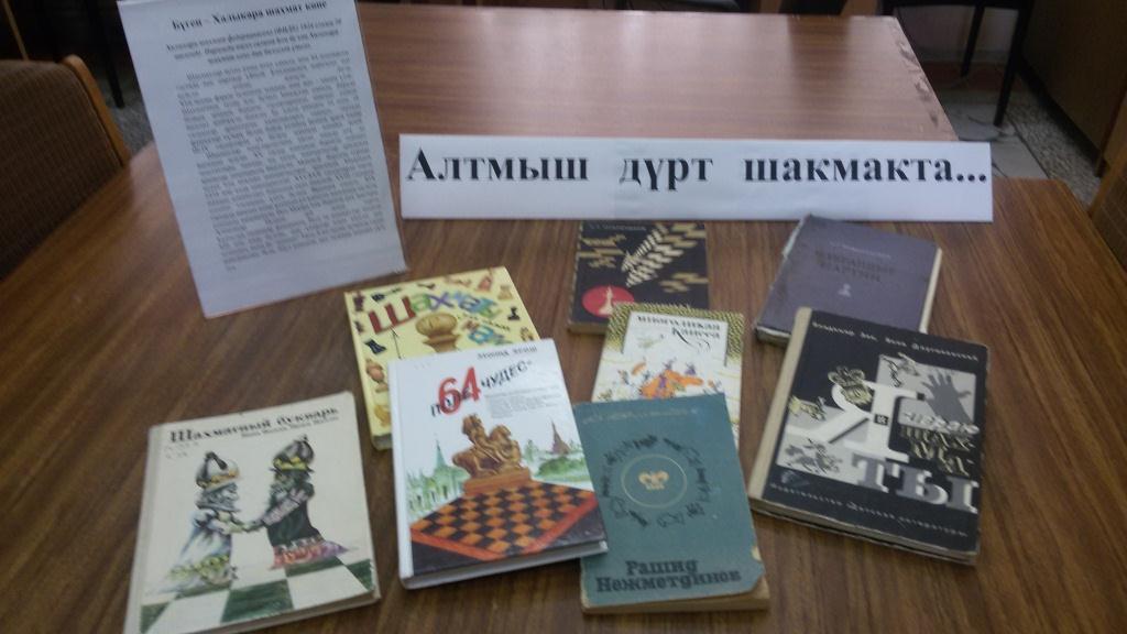 20 июль – Халыкара шахмат көне уңаеннан, Актаныш балалар китапханәсендә “Алтмыш дүрт шакмакта” дигән исемдә китап күргәзмәсе эшләп куелды. Китап укучы балалар белән шахматка кагылышлы  әңгәмә уздырылды. Китапханәдә булган китапларга күзәтү ясалды.