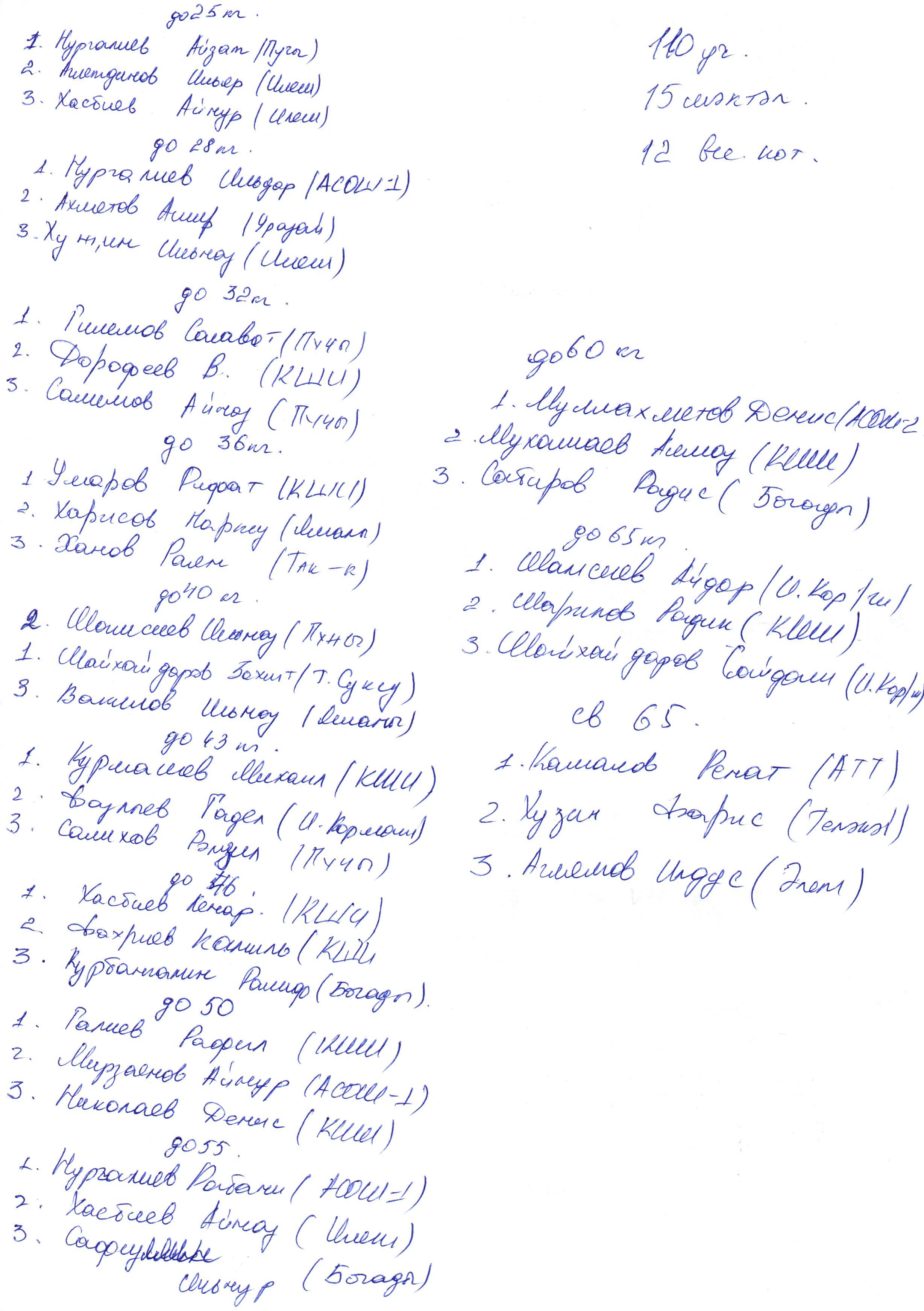 Кыш бабай призына үткәрелгән татар-башкорт көрәше буенча ярышлары нәтиҗәләре