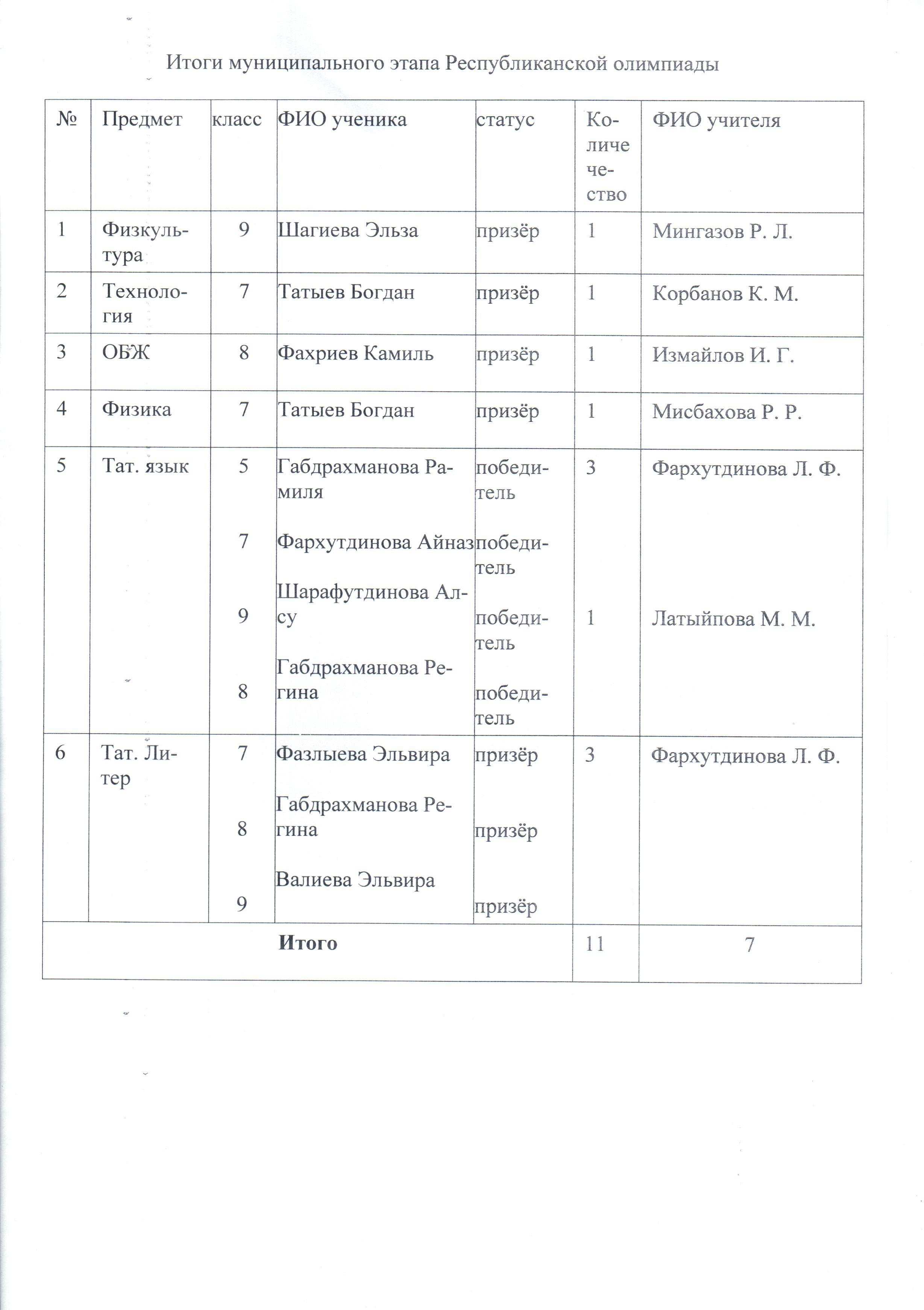 Мәктәп укучыларының Бөтенроссия фән олимпиадаларының район этабы төгәлләнде. Кадет интернат-мәктәбе укучылары 15 фәннән олимпиадыда катнаштылар.Олимпиада эшләре бик гади түгел иде, ләкин безнең җиңүчеләр бар. Без укучыларны һәм укытучыларны уңышлары белән котлыйбыз!
