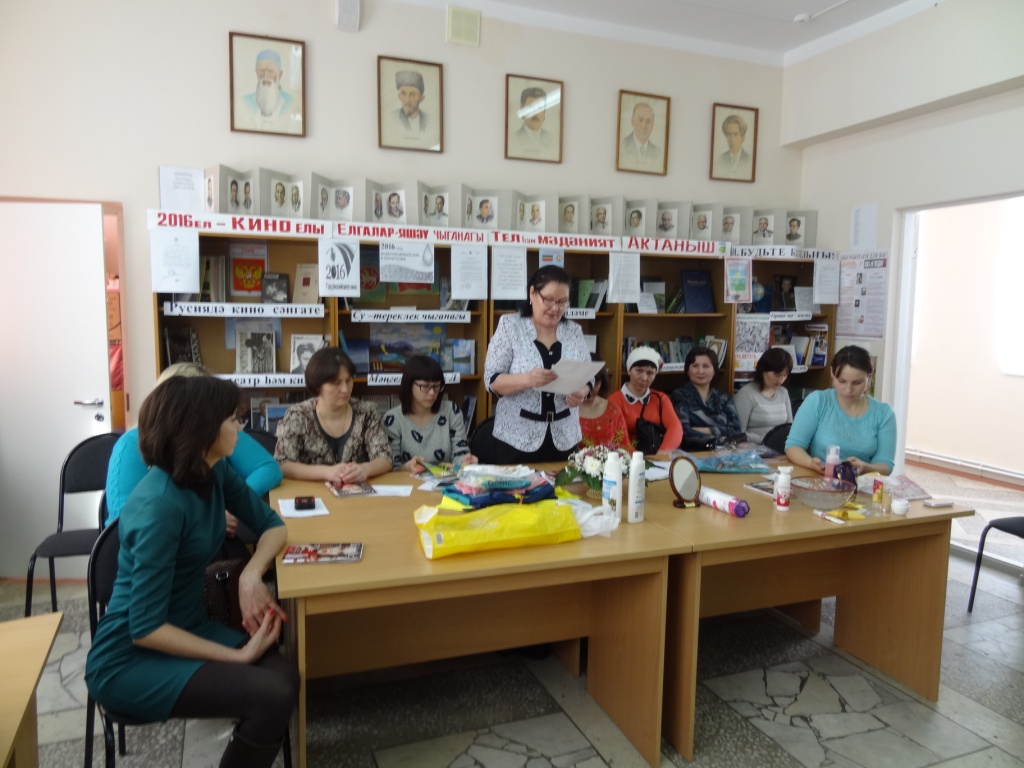 18 март көнне үзәк китапханәнең уку залында "Учак" яшь гаилә клубының чираттагы дәресе уздырылды. "Табигатьнең бар матурлыгы - хатын-кызда" темасы буенча узган бу чарада электрон презентация күрсәтелде. Чәчәк, гөл үстерү остасы Әхмәева Вәсилә Гайси кызы чәчәктән композиция ясау буенча мастер - класс күрсәтте. "Фаберлик" косметик салоны хезмәткәрләре үзләренең продукцияләрен тәкъдим иттеләр. "Кешенең холкын беләсең килсә фил ясат" дигән психологик тест эшләтелде. Актив китап укучы Рәсимә Зарипова хатын-кызлар турында узенең язган шигырен укыды. "Матурлыксыз - тормыш буш мәгарә" исеме астында китап күргәзмәсе эшләде һәм китапларга күзәту ясалды.