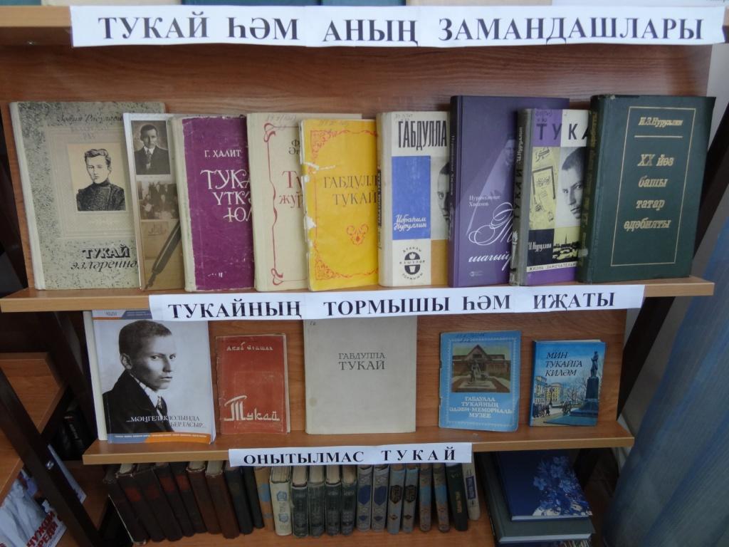 2016 елның 26 апрелендә бөек татар шагыйре Габдулла Тукайның (1886 – 1913) тууына 130 ел тула. Шул уңайдан үзәк китапханә тарафыннан “Тукай хәтирәләре” дигән әдәби викторина игълан ителде. Шулай ук китапханәдә “И мокатдәс моңлы сазым! Уйнадың син ник бик аз..?” дип исемләнгән китап күргәзмәсе эшли башлады. Күргәзмә киң катлау китап укучыларга , бөек татар шагыйре Габдулла Тукайның тормышы һәм иҗаты белән кызыксынучы һәркем игътибарына тәгъдим ителә. Аның максаты – китапханә фондларында булган һәм шагыйрь язмышы , аның иҗаты белән якыннан танышу мөмкинлеге бирә торган китапларны күрсәтү.