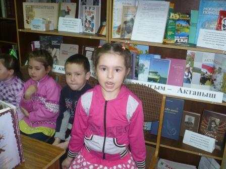 26 апрель - бөек татар шагыйре Г. Тукайның туган көне. Шагыйрьнең балачагы белән кыскача таныштырганнан соң, кунакларыбыз үз һөнәрләрен күрсәттеләр. Тукайның шигырьләрен сөйләп, җырларын җырладылар. Очрашу истәлеге итеп балалар төркеменә китаплар бүләк иттек.
