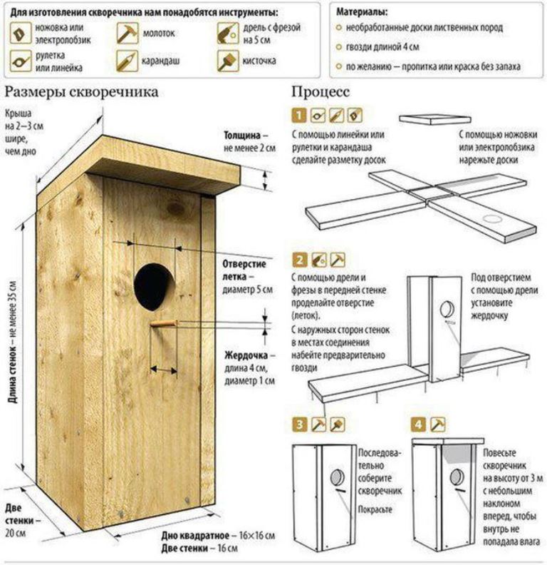 Сыерчык оясының киң таралган ысулы ул – тактадан турыпочмаклык формасында ясалганы. Моның әллә ни авырлыгы да юк. Кул астында кирәкле эш җиһазлары һәм такта кисәкләре булса, ояны “ә” дигәнче корып куярга була. Түбәндәге схема-шпаргалка да сезгә ярдәм итәр: