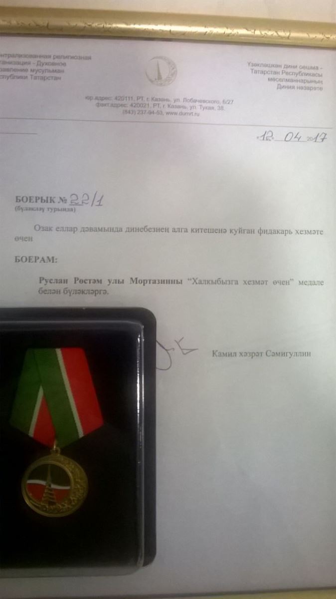 17 апрель көнне Үзәкләшкән дини оешма – Татарстан Республикасы мөселманнары Диния нәзарәтенең VII Корылтае узды. Корылтайда районыбыз имам- мөхтәсибе Руслан хәзрәт Мортазин Үзәкләшкән дини оешма – Татарстан Республикасы мөселманнарының Диния Нәзарәте тарафыннан озак еллар дәвамында динебезнең алга китешенә куйган фидакарь хезмәте өчен “ Халкыбызга хезмәте өчен” медале белән бүләкләнде.