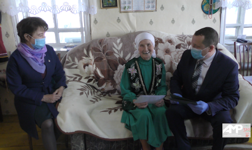 Актаныш район Советы аппараты җитәкчесе Алберт Тимиров Өммеһани Баянованы 90 яше белән тәбрикләп, РФ президенты Владимир Путинның котлавын тапшырды.
